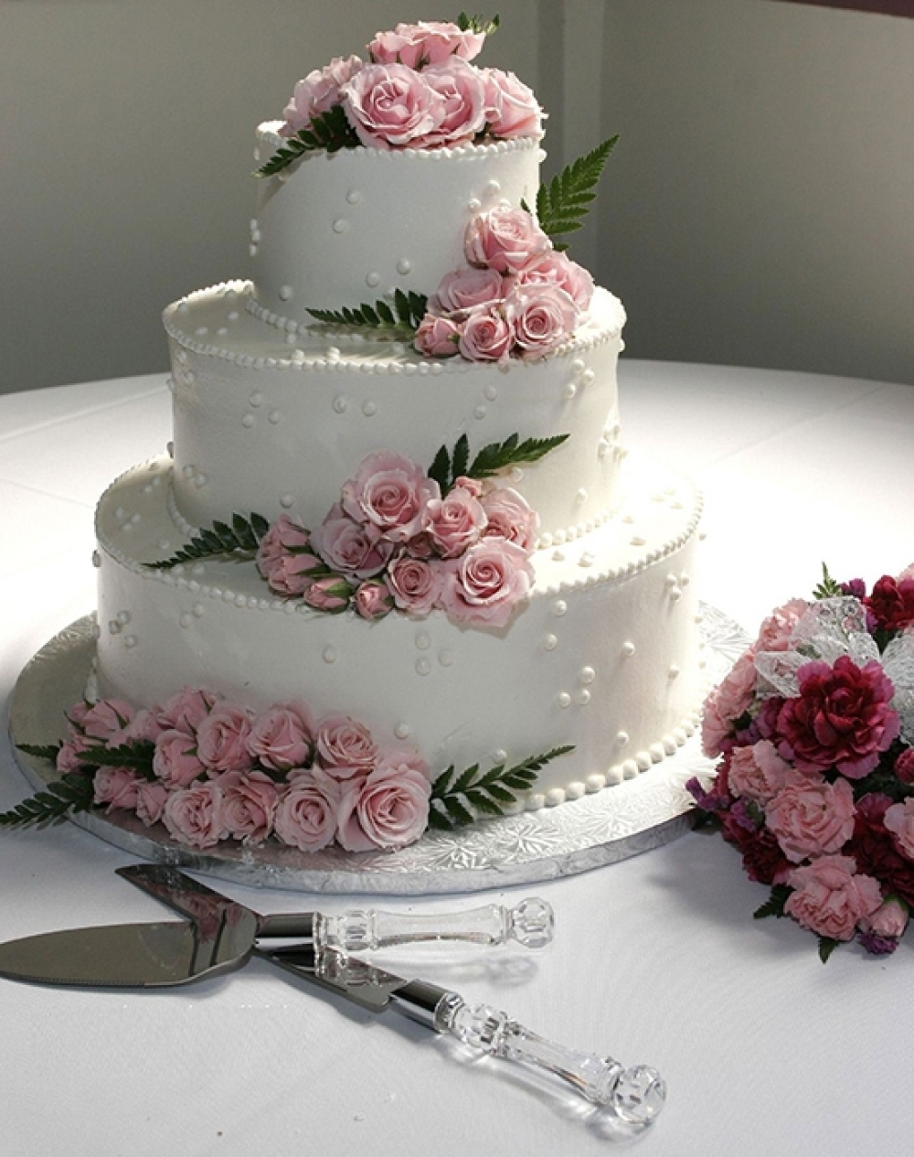 Hoa Tươi: Bánh cưới 3 tầng thường được trang trí bằng hoa tươi, từ hoa hồng, lan đến các loại hoa đồng nội, tạo sự lãng mạn và sinh động.